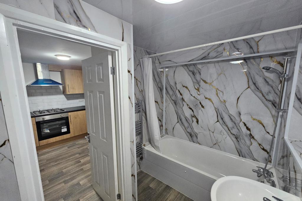 Upon entry, you are welcomed by a bright and expansive reception room, thoughtfully laid out to accommodate both relaxing evenings and stylish entertaining. The contemporary fully fitted kitchen is finished to a high standard complete with integrated appliances, offering both functionality and sleek modern design. Boasting three spacious double bedrooms, the property provides versatile accommodation perfect for those seeking additional comfort and space. The well-appointed three-piece family bathroom is equally impressive, presented with quality fittings and a clean, modern finish. To the rear, a private garden offers a peaceful outdoor sanctuary. Additional benefits include gas central heating, double-glazed windows and carpeted flooring throughout, ensuring warmth and comfort all year round.