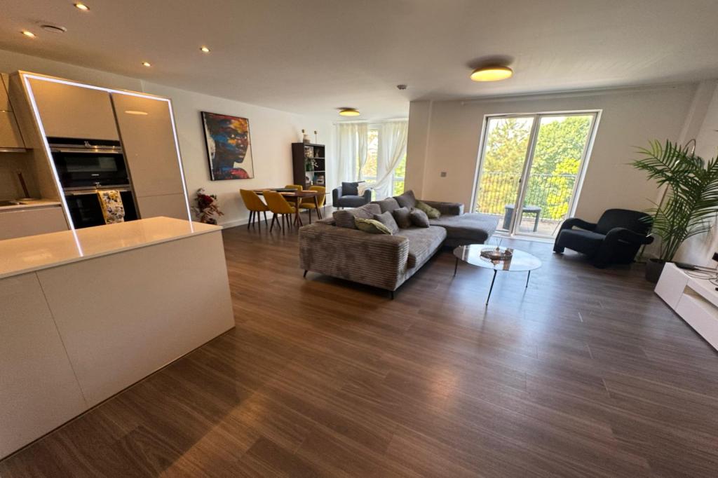 The flat comprises three generously sized bedrooms, including a master bedroom with en-suite, and a separate family bathroom, both finished to a high standard. Set within a stylish new-build block, the property boasts a bright and spacious open-plan living area, a sleek contemporary kitchen with integrated appliances, and a private balcony ideal for enjoying the view. The entire property has been very well maintained, showcasing quality fixtures and a fresh, modern design throughout.